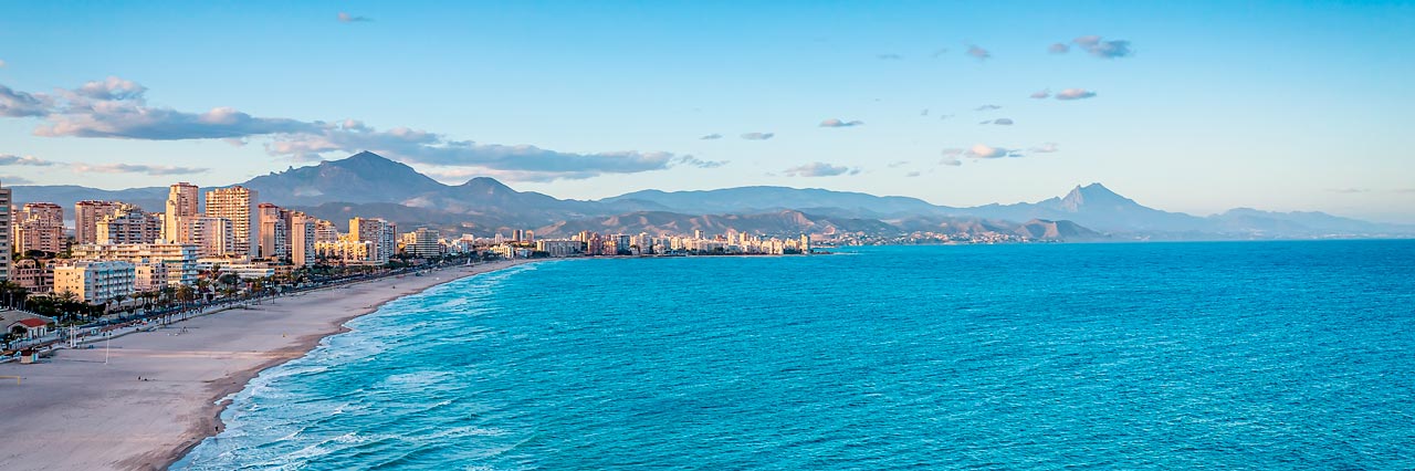 A solo 500 metros de nuestros apartamentos se encuentra la Playa de Muchavista, una de las más extensas y apreciadas de la Costa Blanca.