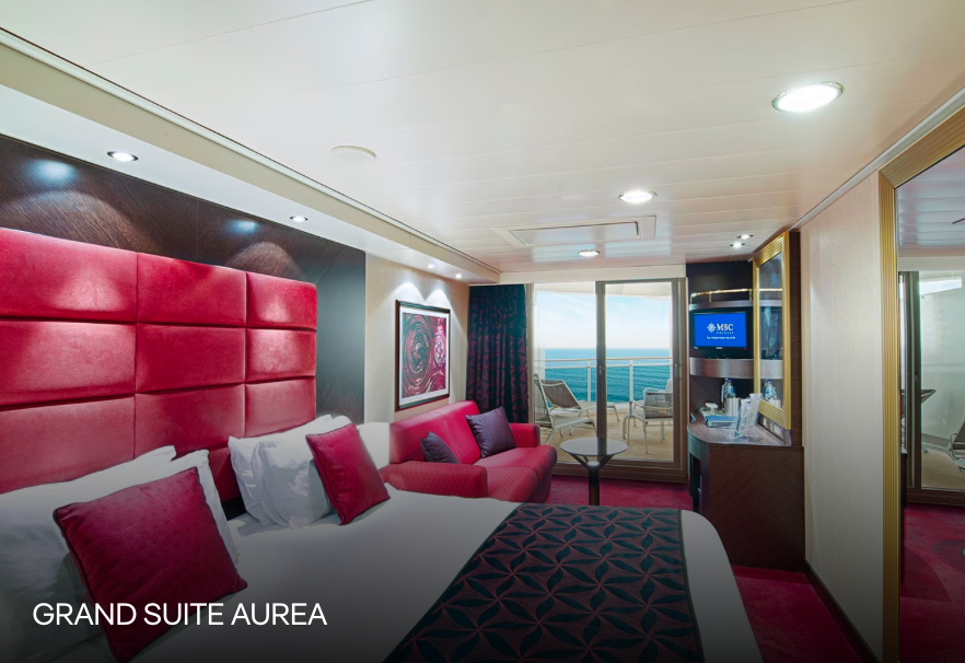Descubre el centro de bienestar MSC Aurea Spa de a bordo, y el exclusivo MSC Yacht Club aún más espacioso, con sus obras de arte expresamente realizadas. Los afortunados pasajeros que se alojen en la suite número 16007 de la cubierta 16, pueden disfrutar del glamour y el estilo de una suite diseñada para Sophia Loren y contando con su ayuda. Lámparas especialmente diseñadas de un rojo intenso, brezo salvaje y una alfombra roja han sido elegidos por Sophia Loren para dar un toque personal de glamour, mientras que impresionantes fotografías en blanco y negro de sus papeles más memorables decoran las paredes de la suite.