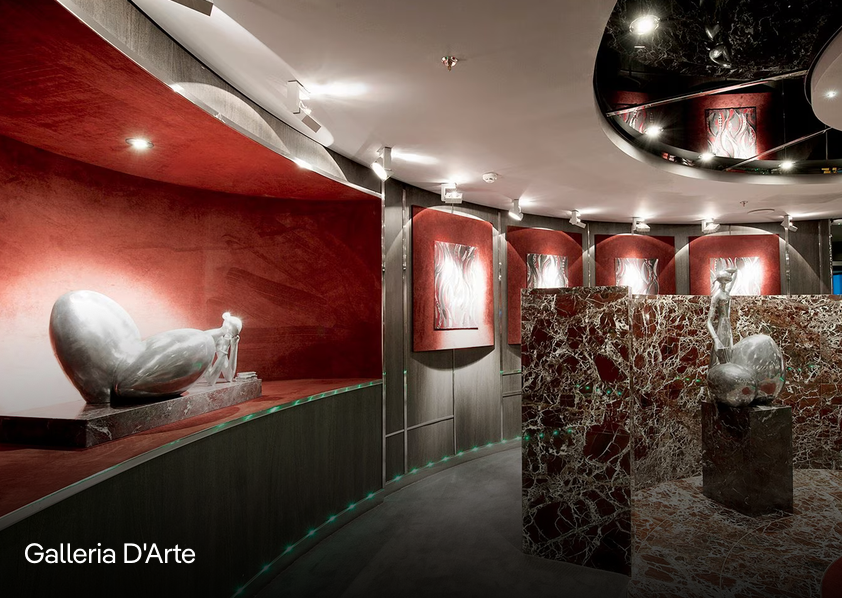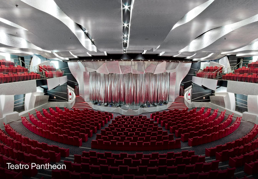 MSC Divina cuenta con una plaza de piedra real, un Casino Veneziano y el Pantheon Theatre del tamaño de Broadway. Desde las elegantes escaleras de cristal Swarovski hasta la Infinity Pool que se extiende hasta el mar, hay instalaciones de ocio elegantes y lujosas por todas partes.
