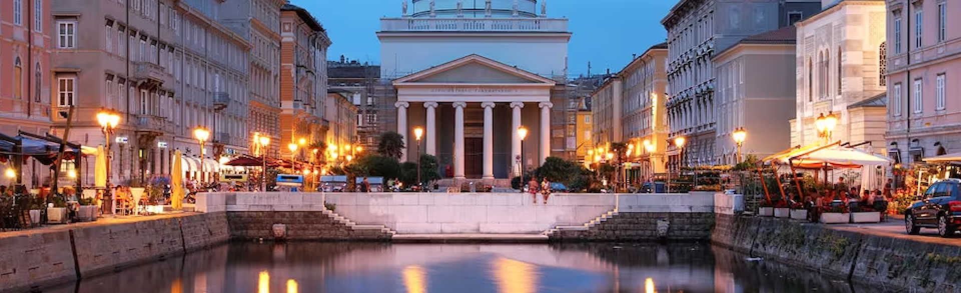 La parte más antigua de la ciudad está situada en la colina de San Giusto: el Castillo, las ruinas de la Basilica Forense y más abajo el teatro. Los orígenes de la ciudad de Trieste se pierden en la leyenda: parece que aquí atracaron Jasón y los Argonautas buscando el Vellocino de Oro, Antenore y Diomede después de la guerra de Troya, y hay quien dice que en su golfo aparecerá el ángel el día del Juicio Final. Cerca de la ciudad se encuentra la desembocadura del río Timavo que nace en Eslovenia, cruza abajo del suelo el altiplano Cásico y sale a la luz cerca del mar. Trieste además es un lugar donde confluyen muchas personas de etnias y culturas diferentes