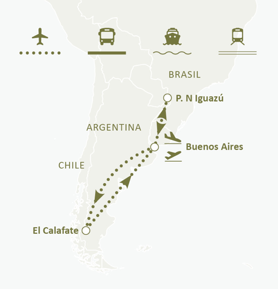 Descubre en 11 días y 8 noches la esencia de Argentina: desde la vibrante Buenos Aires hasta la majestuosidad de la Patagonia. Comienza volando a la capital porteña, donde recorrerás sus avenidas históricas (Plaza de Mayo, Avenida 9 de Julio, San Telmo, La Boca y Palermo) y disfrutarás de su rica oferta cultural y gastronómica. Sigue hacia el Parque Nacional Iguazú para maravillarte con sus 275 saltos, incluida la imponente Garganta del Diablo, explorando ambos lados (argentino y brasileño) y navegando en lancha bajo sus cascadas. El viaje continúa en El Calafate, punto de partida al imponente glaciar Perito Moreno —considerado una de las ocho maravillas naturales— con paseo en barco hasta sus paredes heladas. Con salidas diarias (abril 2025–marzo 2026), alojamiento en hoteles seleccionados, traslados, excursiones guiadas y vuelo interno incluido. Un circuito que te sumergirá en lo mejor de la naturaleza, la cultura y la aventura argentina.
